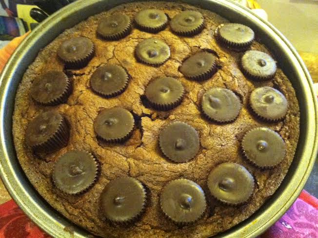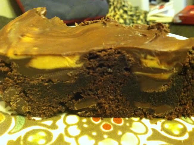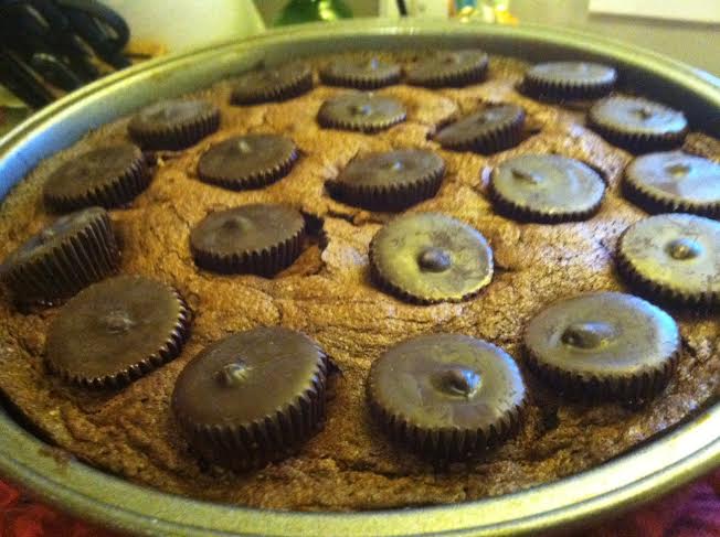 Preheat the oven to 350. Prepare brownies according to box directions. Remove from oven and press peanut butter cups into the top of the warm brownies, making rows that cover the whole top.