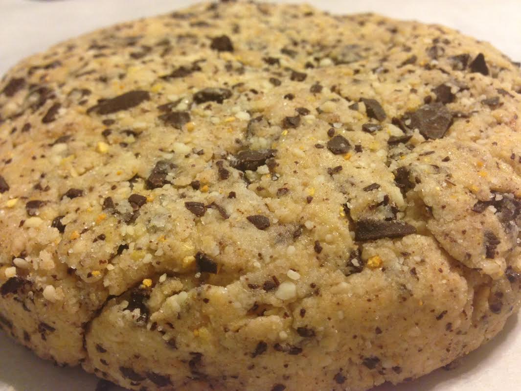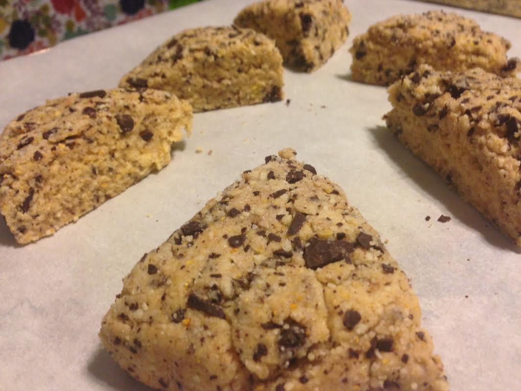 Using a pastry cutter or two knives, cut in butter until mixture resembles coarse crumbs. Stir in eggs, zest and vanilla until dough comes together. Stir in chocolate.