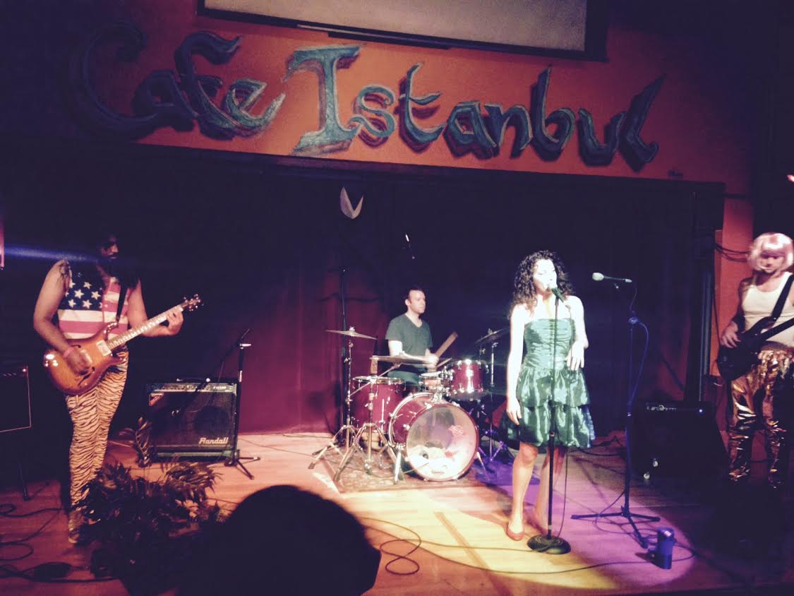First musical debut in New Orleans on the stage of Café Istanbul ten nights ago. Costumed in a metallic green taffeta dress that has seen me through fifteen years of diva moments. My hair has been there since the beginning, still reaching.