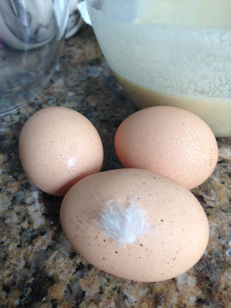 My eggs were so fresh, Lucille’s tail fluff was still stuck to one of them… haha.