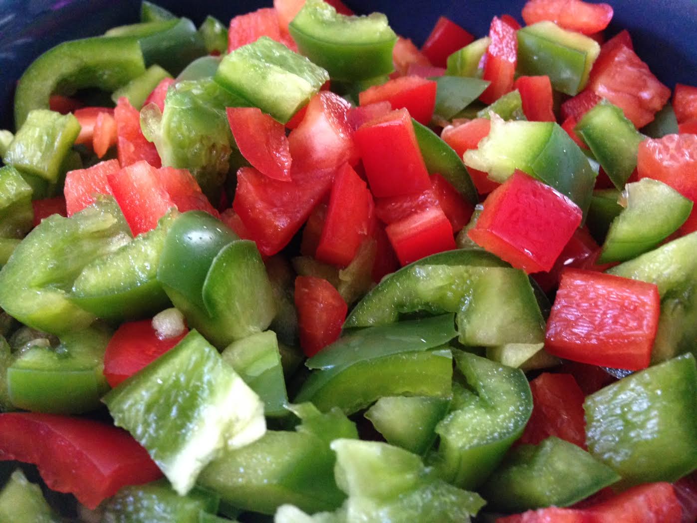In a large stockpot, add the cores of the red and green pepper, apple cider, peppercorns, cilantro bunch, garlic powder to the water and bring to a boil. Add the top round steak. Reduce heat and simmer steak for 90 minutes until the meat is tender.