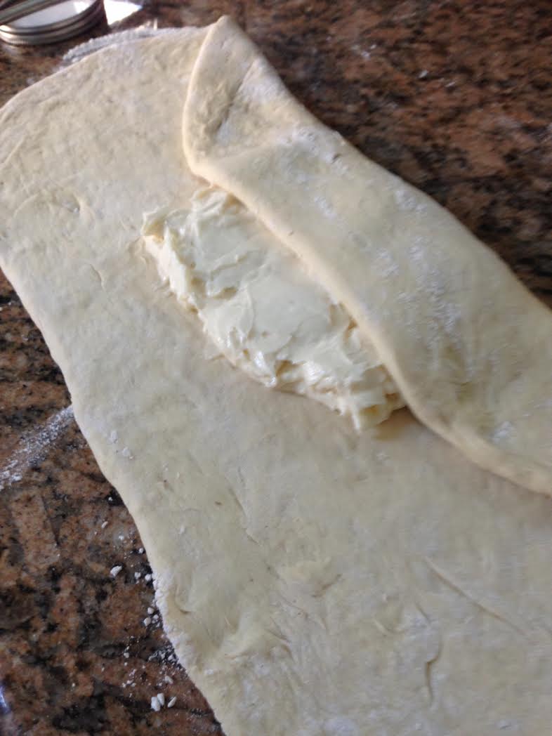 Fold the short sides of the dough over the butter to enclose it; pinch the open ends of the packet to seal.
