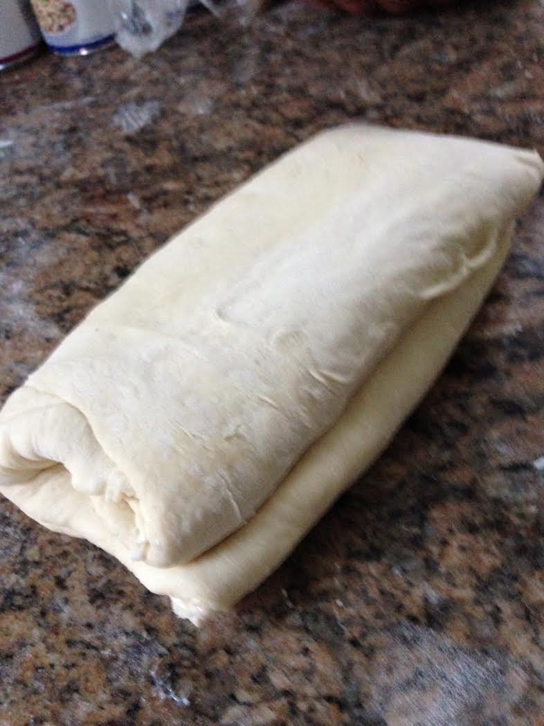 (The butter should be pliable; chill the dough for 10 minutes if the butter is too soft.) Fold one-third of the dough into the center and the other third on top, like you would fold a letter. Turn the dough 90°. Roll out the dough again to a 15-by-8-inch rectangle and fold like a letter again. (This is 2 turns.) Wrap in plastic and refrigerate for 1 hour. Repeat the rolling, folding and chilling 2 more times for a total of 6 turns. Really. Yes, really.
