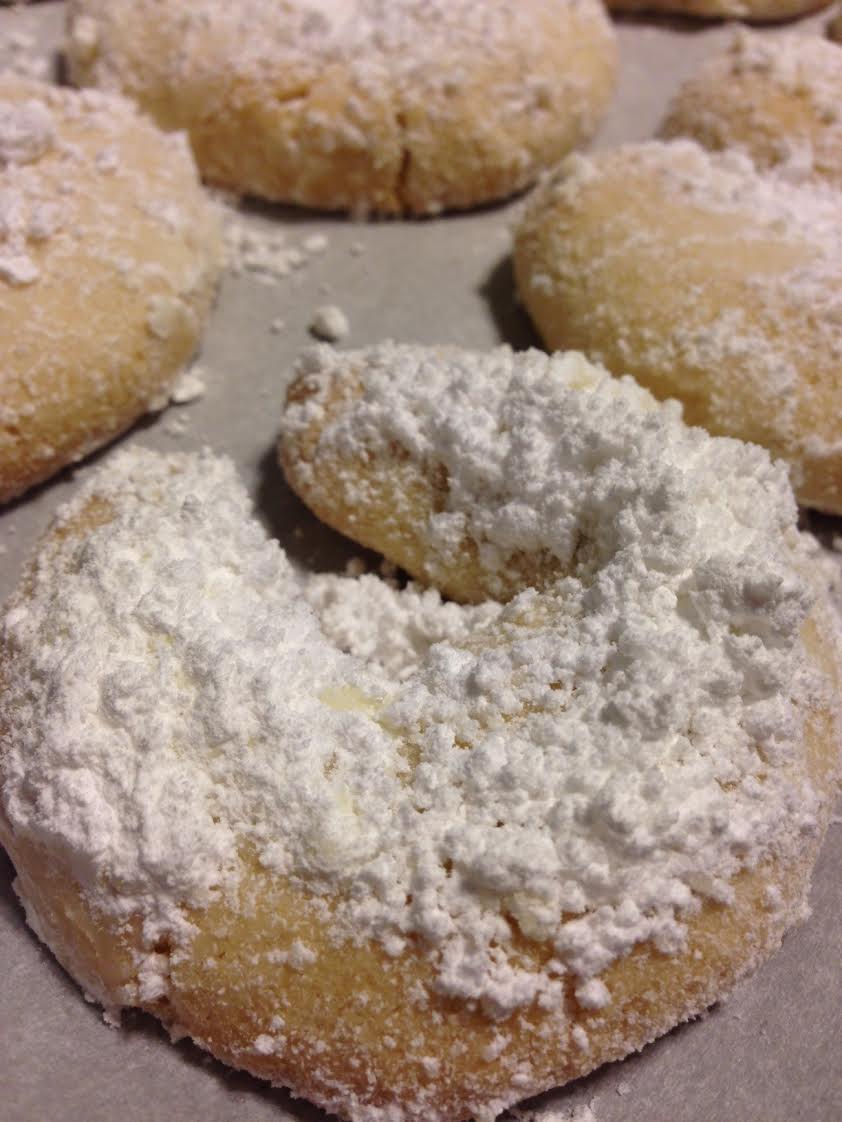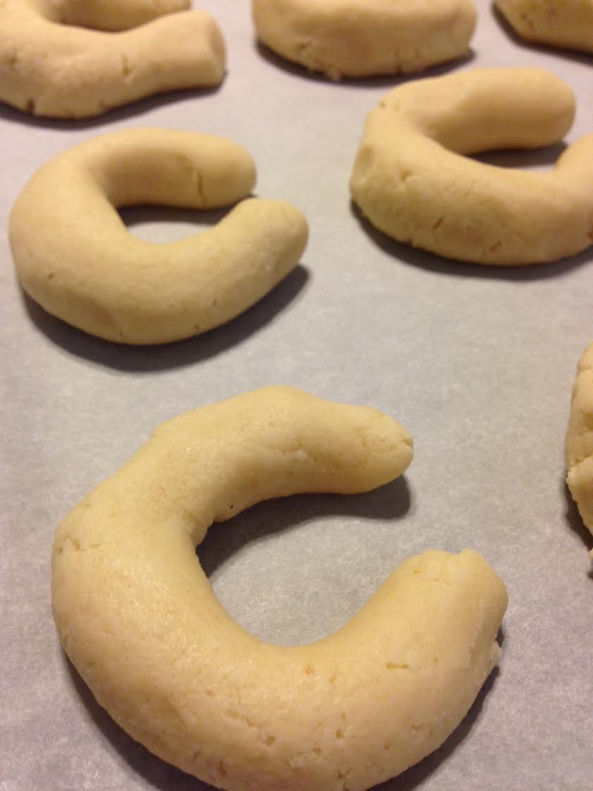 Scoop 12 rounded tablespoonfuls of the dough onto the prepared baking sheet. Using your hands, roll each ball into a 4-inch rope, then shape into a crescent; return to the baking sheet. If the dough gets too soft, refrigerate until firm. Bake the cookies, rotating the sheet halfway through baking, until lightly browned around the edges, 13 to 15 minutes. Transfer to a wire rack and let cool for 5 minutes.