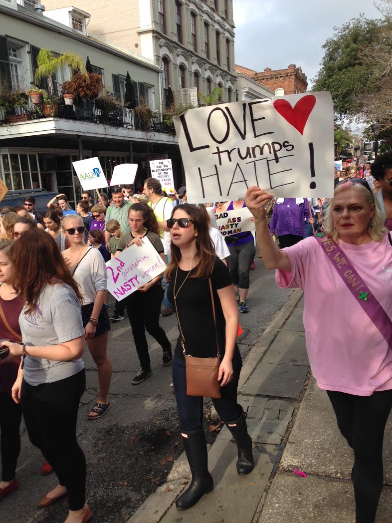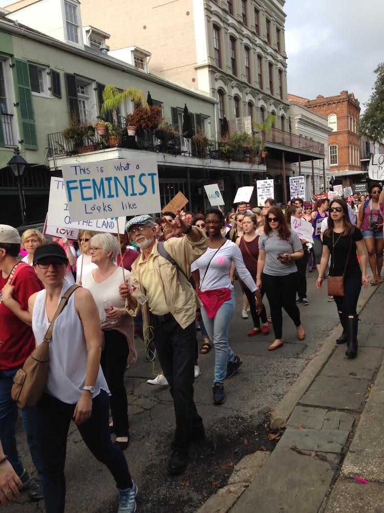 C is for cookie, crescent city, carnival, and courage—respect and laud to all the women and men who joined in the important march this weekend. Saturday was a beautiful day for a protest in New Orleans, and I was heartened by the company of some 15,000 re(sisters) who together, in a procession two miles long, held fists high in peaceful dissent.