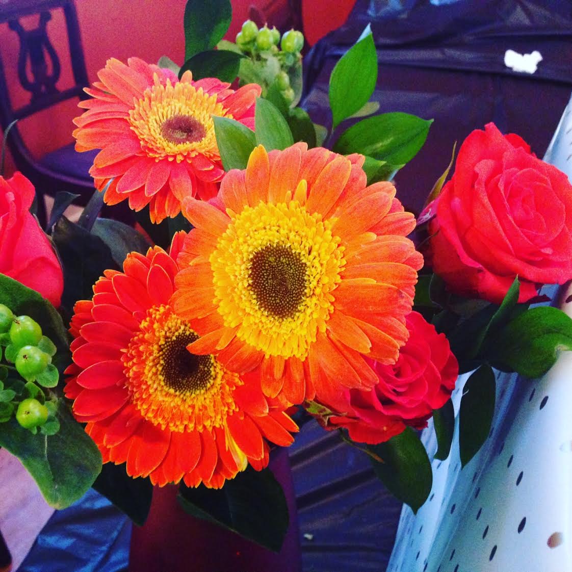 What a fabulous birthday. Surprise after surprise after surprise! Bright flowers from KP.