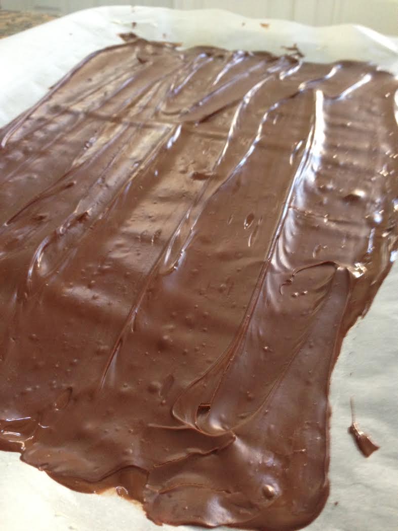 Lightly grease a 9-by-13-inch baking pan and line with parchment paper, leaving a 1-inch overhang. In a medium bowl, microwave 1 1/2 cups of the bittersweet chocolate chips in 30-second bursts until just melted; stir until smooth. Stir in the remaining 1/2 cup of bittersweet chocolate until melted. Spread in an even layer in the prepared baking pan.