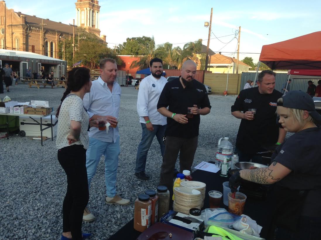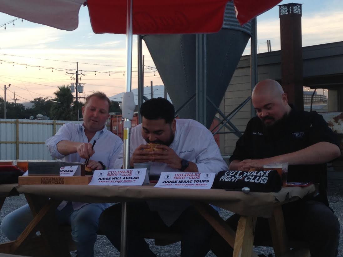 I am dazzled by the transformation of Central City over the last half decade. Tonight KP and I visited a new establishment, Central City BBQ. I am delighted by the artful and homegrown approach to urban bbq! Central City BBQ hosted the Culinary Fight Club competition tonight—the challenge: burgers with 25% mushroom blend—the competitors: Chef BJ Creswell, Room Chef at Scarlet Pearl Casino Resort, Chef Ryan Andre, Corporate Chef, City Pork Hospitality and Chef Mike Newhall, Executive Chef, Elite Catering & Events. Judges were Isaac Toups, Chef/Owner, Toups’ Meatery and Tory McPhail, Executive Chef, Commander’s Palace, and Chef Will Avelar from Meril.
