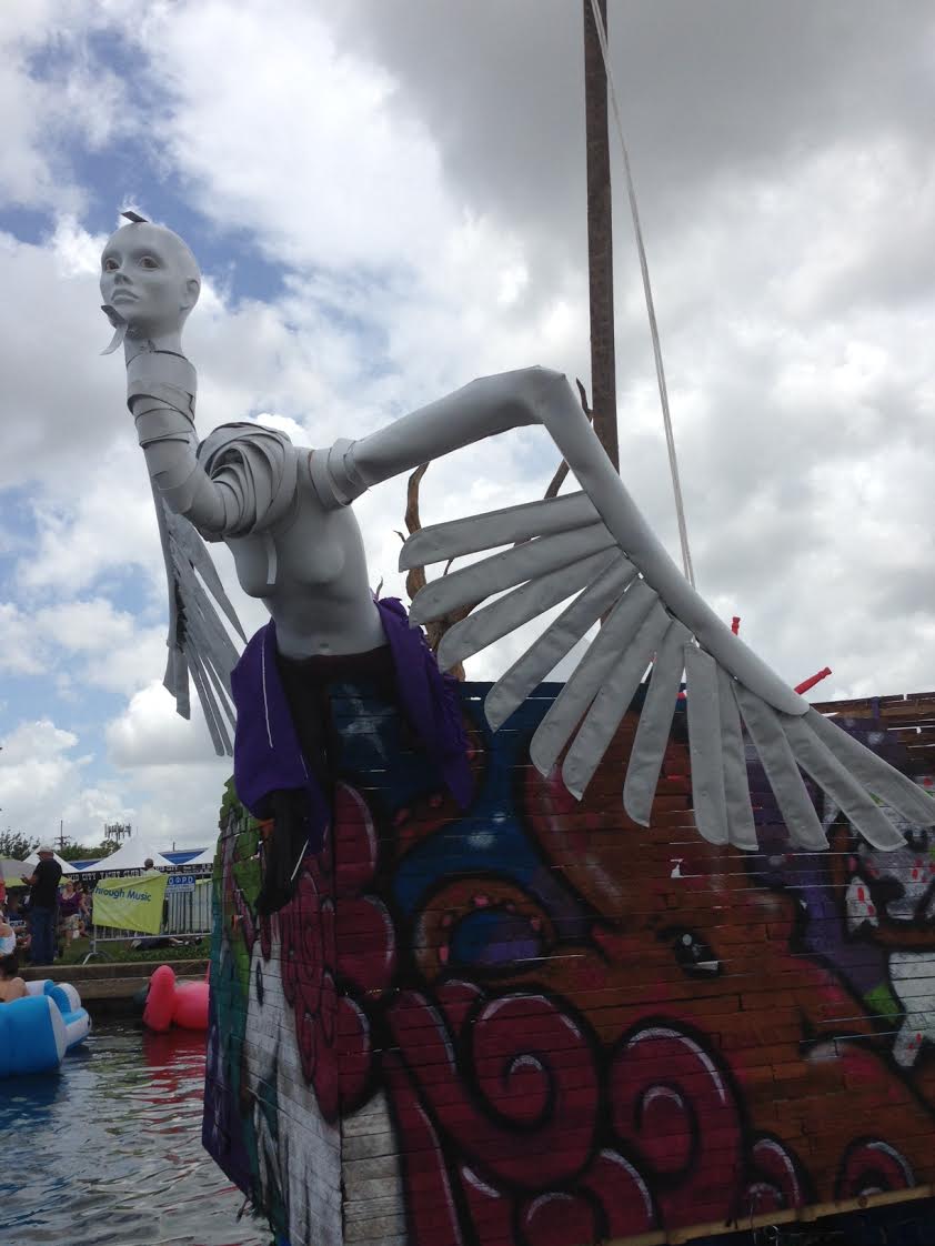 Bayou Boogaloo sailed through Mid City this weekend. There were many, many pirates. Most of them neon. I saw a stuffed dolphin on a guy’s shoulder, next to his mullet’s tail. We sailed our trusty Old Town Featherweight from stage to stage, along side a fleet of giant rubber duckies. Summer has arrived in the Crescent City.