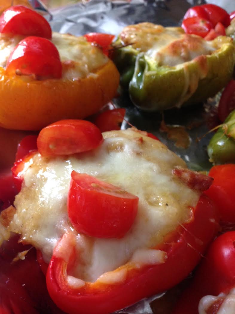 Bake in preheated oven until cheese is browned and peppers are tender, about 30 minutes.
