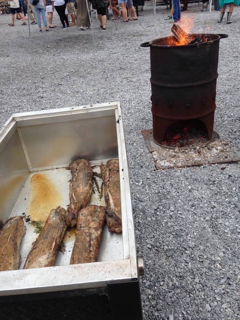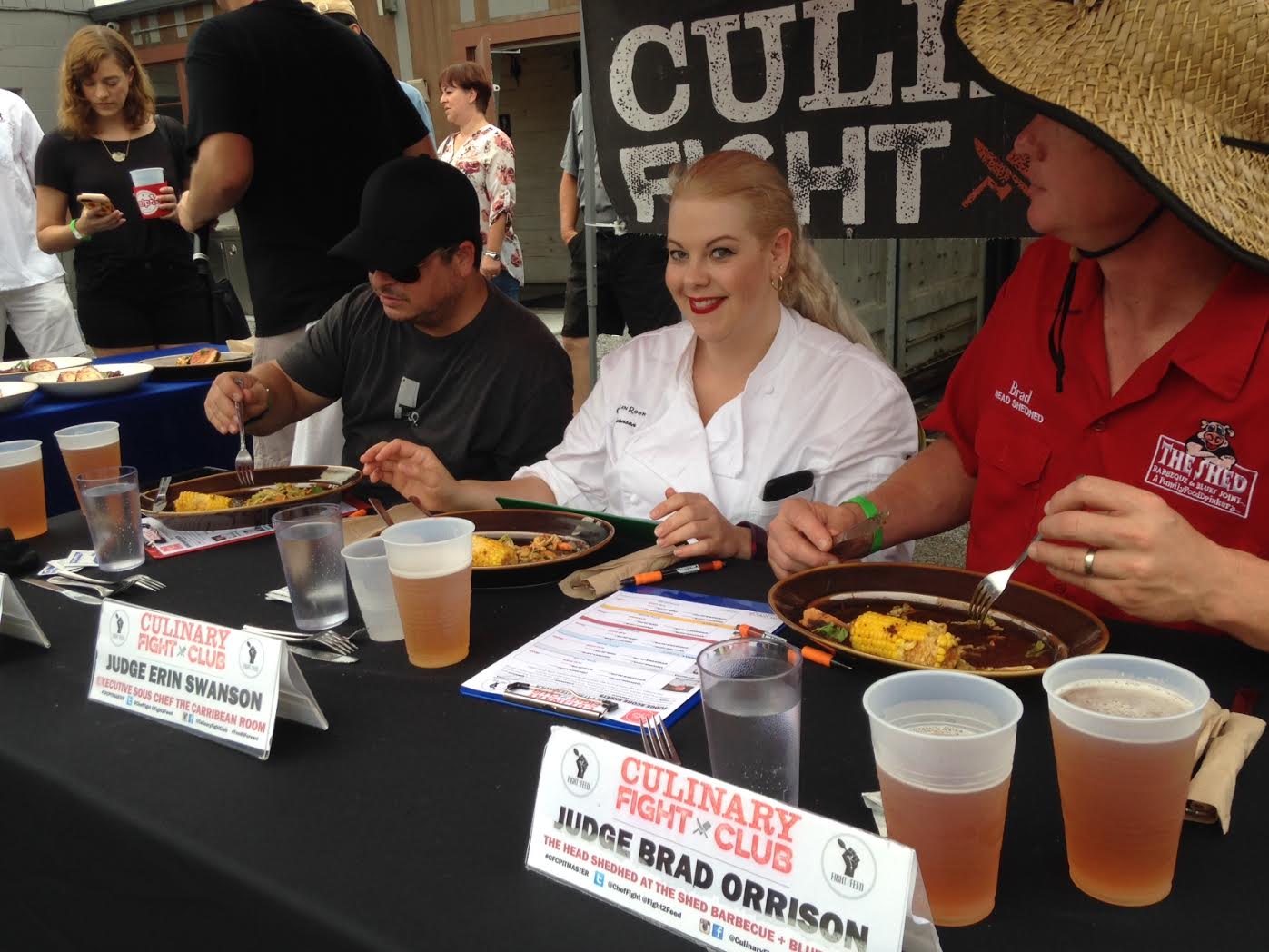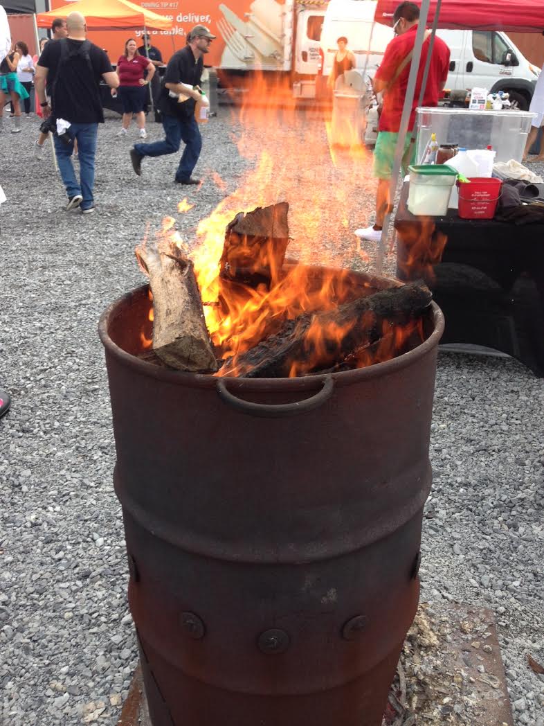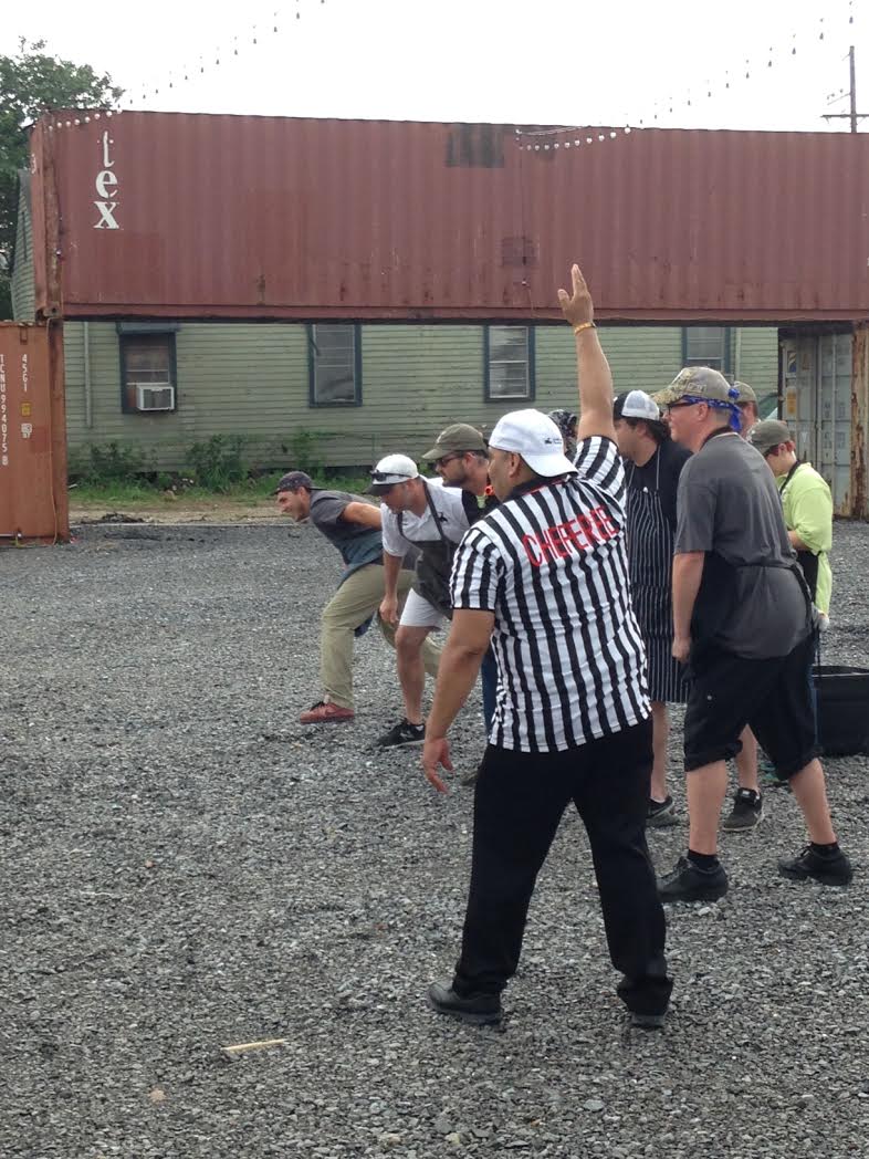 We returned to Central City BBQ last night to watch five barbeque pit masters and their teams face off in the Culinary Fight Club, the winner decided both by a team of judges and by the tasters challenge. It stormed all afternoon, but the rain lifted so there remained a heavy steam in the air—all the better to carry the aroma of delicious bacon grease and pork fat and roasted garlic.