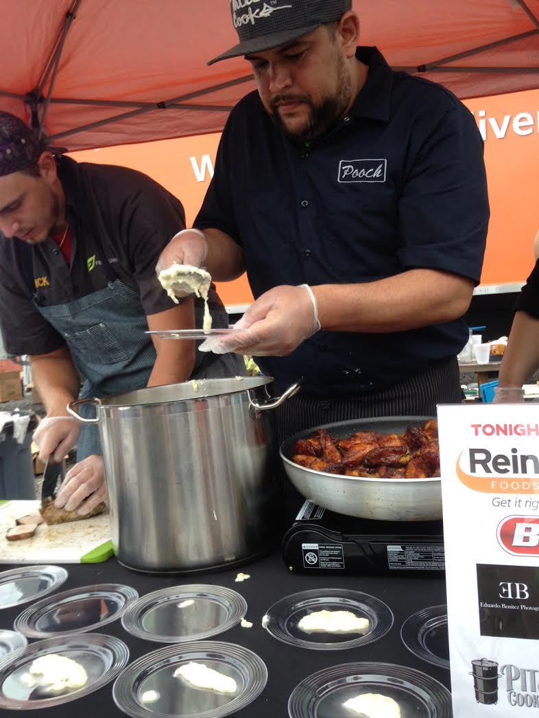 But my absolute favorite was Chef Sean Rivera’s (Pooch) dish, served on cutting boards, with a side of roasted garlic. He made a BBQ sauce with Steen’s syrup and I kid you not, I ate a plantain (which I hate!) because I thought it was a chicken wing. He is the deserving winner.
