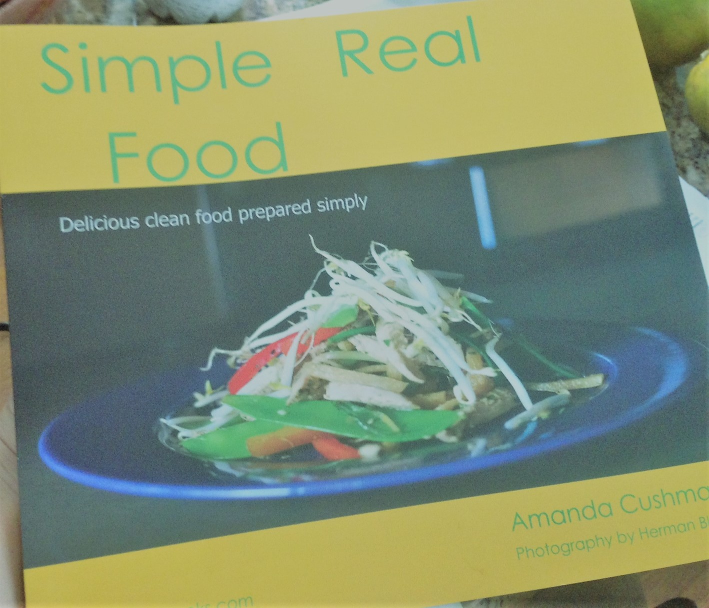 Keeping in the healthy groove, I need to shower praise on Simple Real Food by Amanda Cushman. She offers a simple cookbook from a woman who came by her trade honestly, like my mother (and who sort of looks like my mother, and seems to have many of the same gourmet tips to offer as my mother…Mom? Are you sure you don’t have a double life in New York??) So many delicious recipes, with lots of flexibility in the text, which I appreciate.