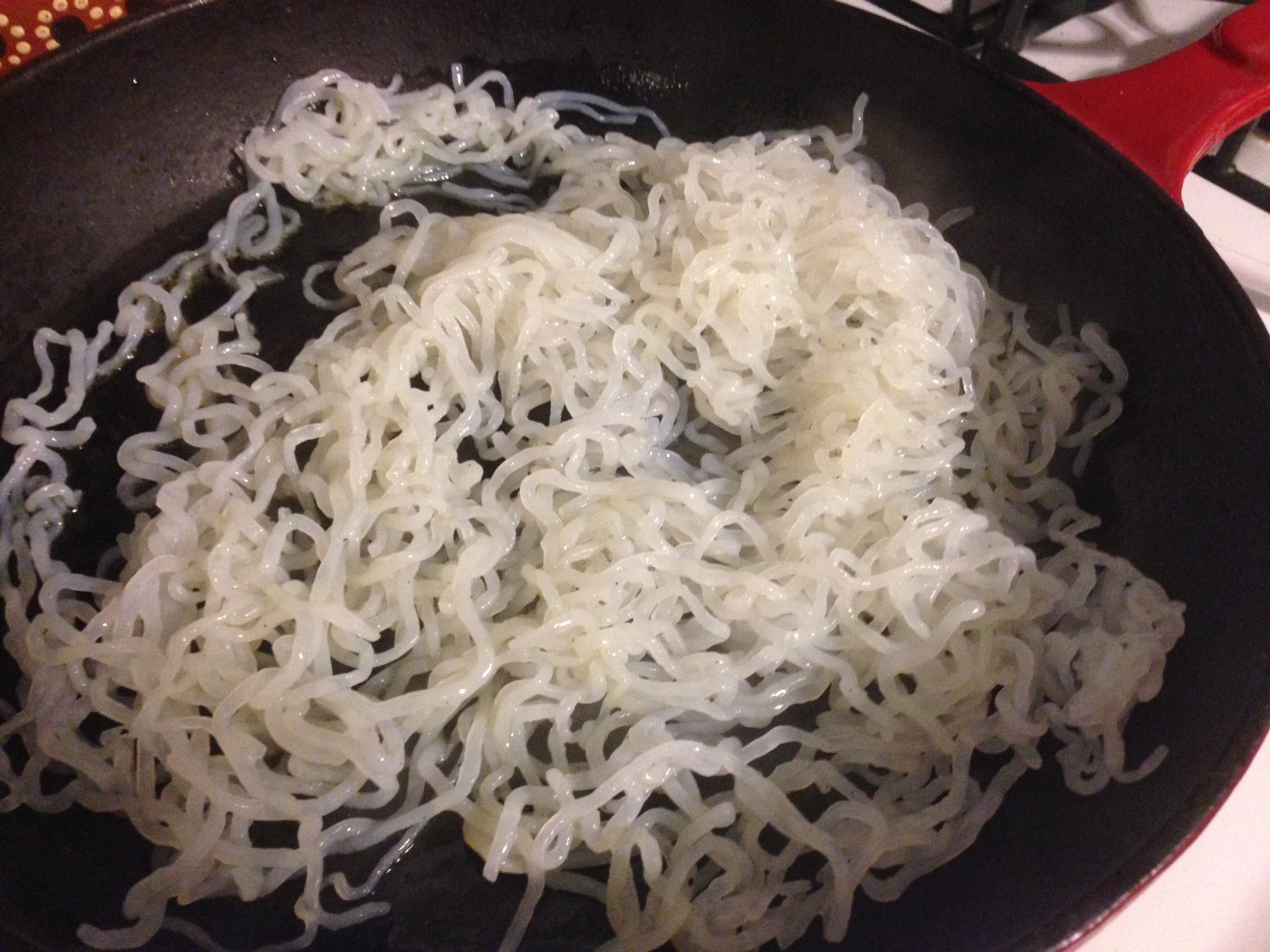 I substituted the noodles with Konjac noodles made by Skinny Pasta. Konjac is a plant native to Japan, and the noodle substance is harvested from the roots, made into all kinds of noodle and rice shapes. They are gluten free, full of fiber and taste totally neutral.