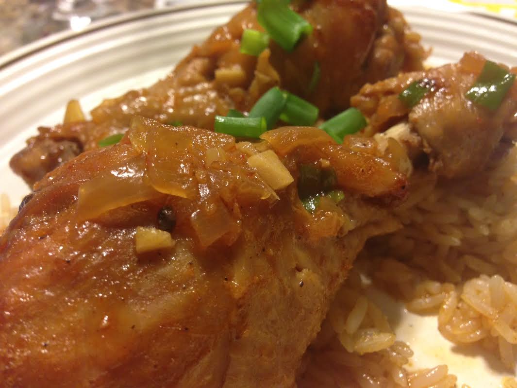 Add scallions to chicken and cook until tender, about 3 minutes. Season with salt and pepper. Top each cake with 2 chicken legs and a few scallions; spoon plenty of sauce over.