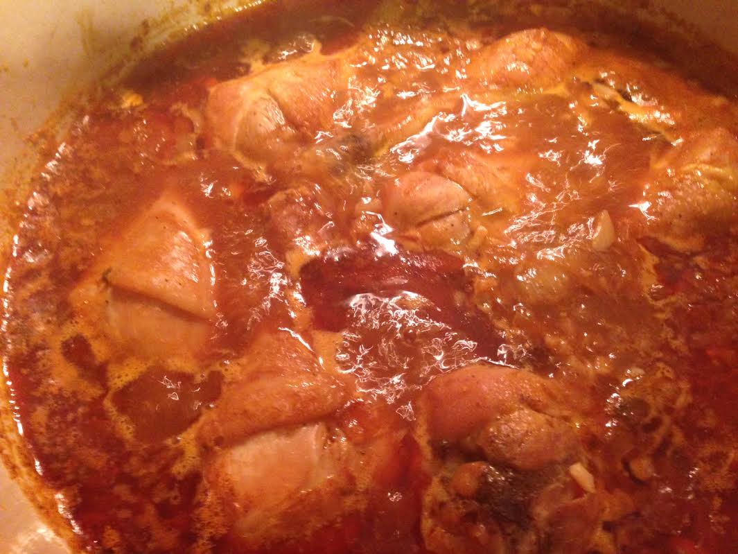 Meanwhile, season chicken generously with salt. Heat butter and vegetable oil in a medium heavy pot over medium. As soon as foaming subsides, add chicken and cook, turning occasionally, until lightly browned, about 5 minutes. Add reserved sauce and bring to a simmer; cook until sauce appears to thin out, about 3 minutes. Add broth and bring to a boil. Reduce heat, partially cover pot, and simmer, turning occasionally, until chicken is very tender, 45–55 minutes.