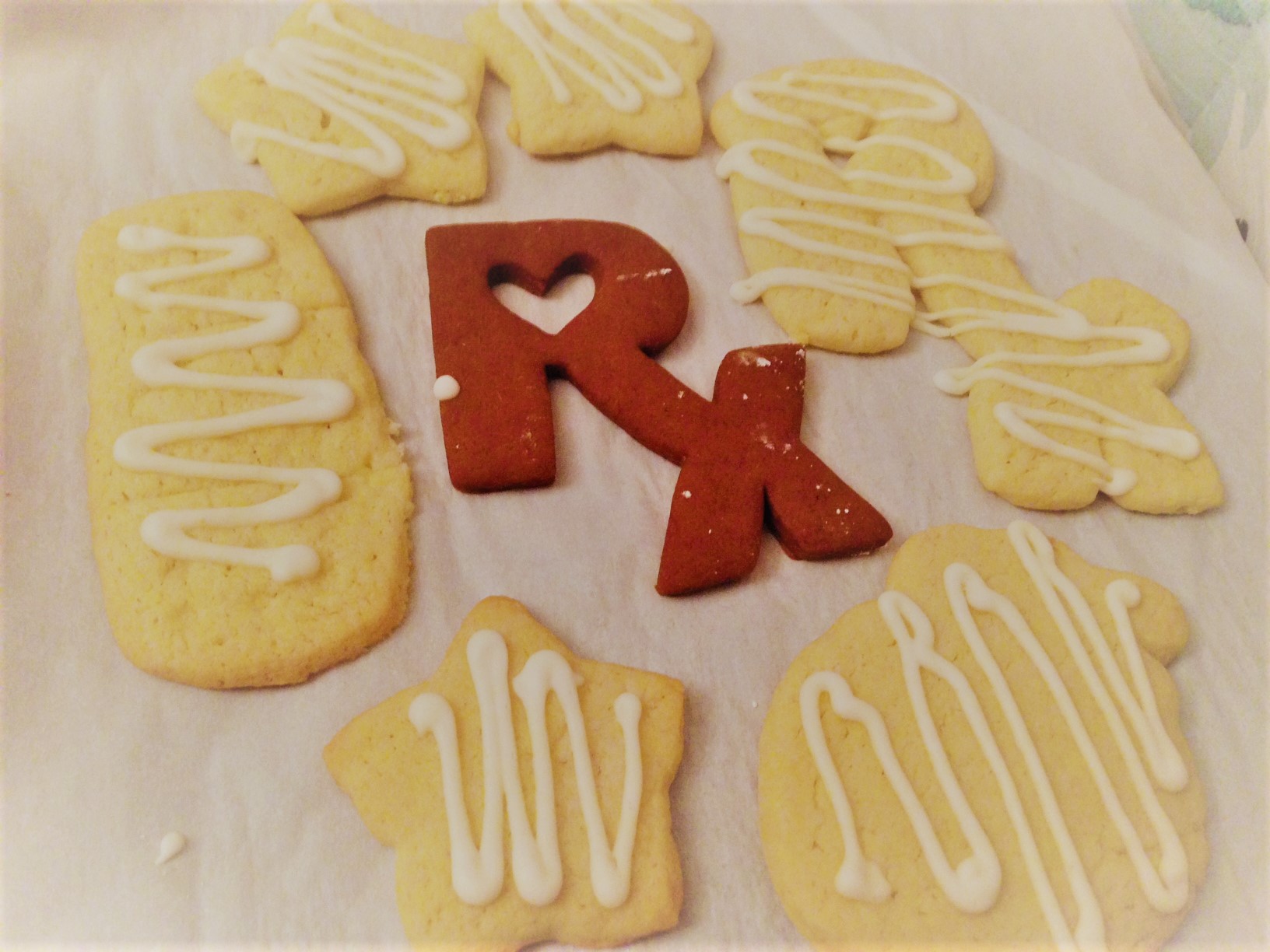 and we decorated little band-aid and prescription bottle gingerbreads, snickerdoodles and sugar cookies. I think I made about 200 strong and they went fast! Rx: cookie.