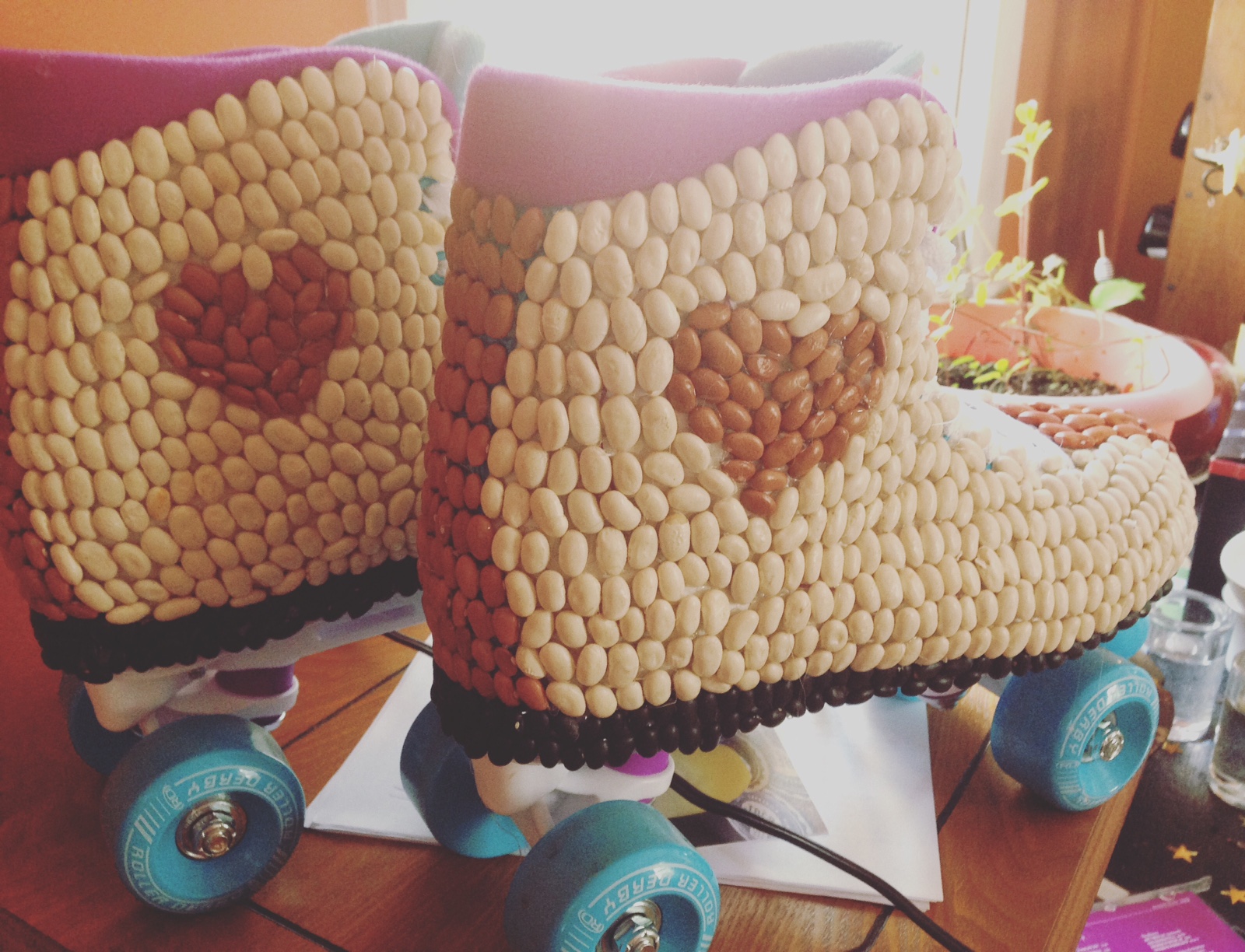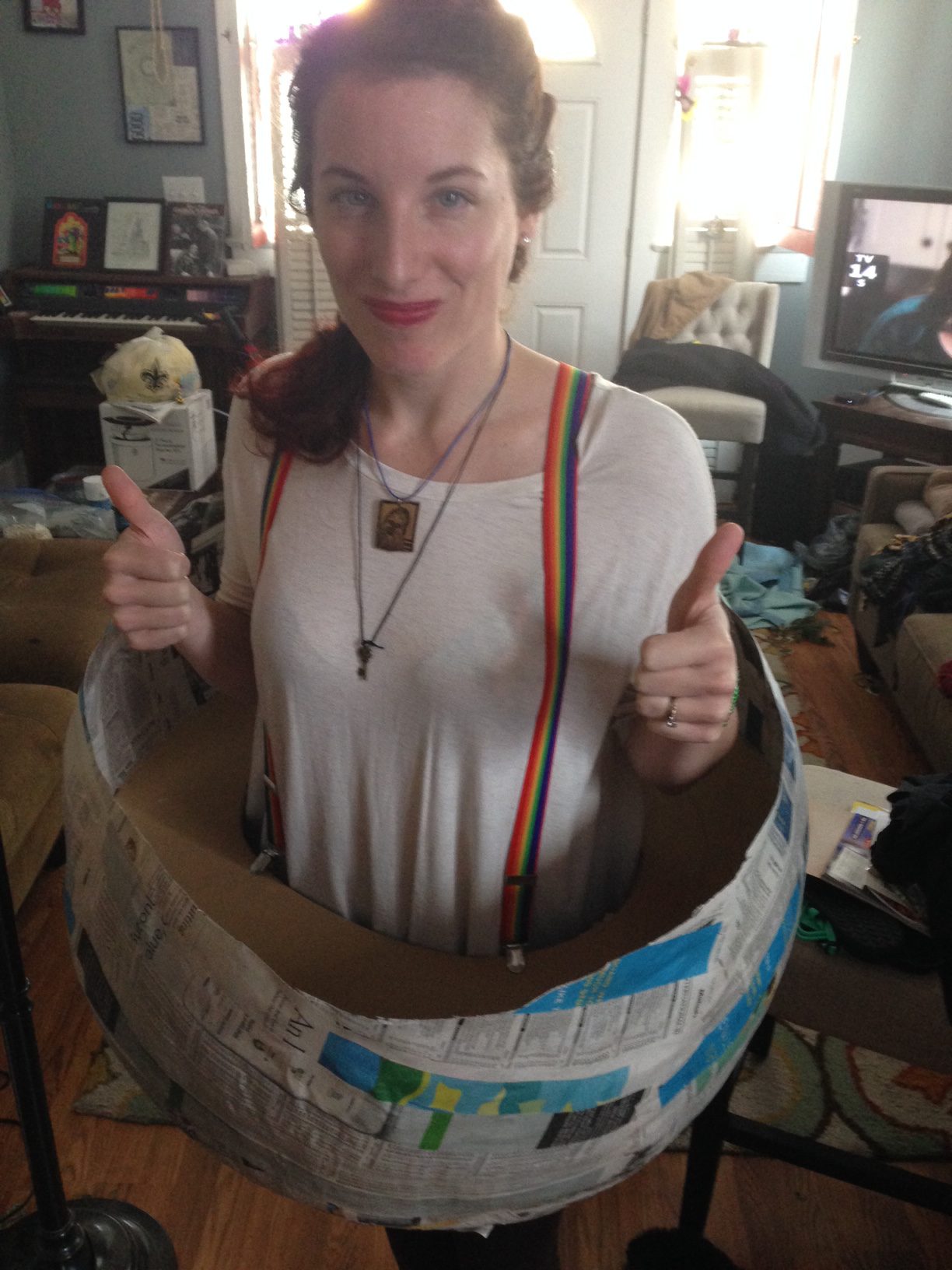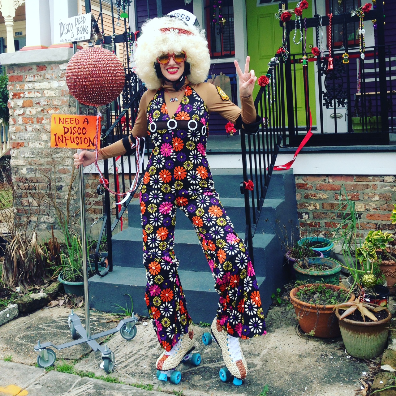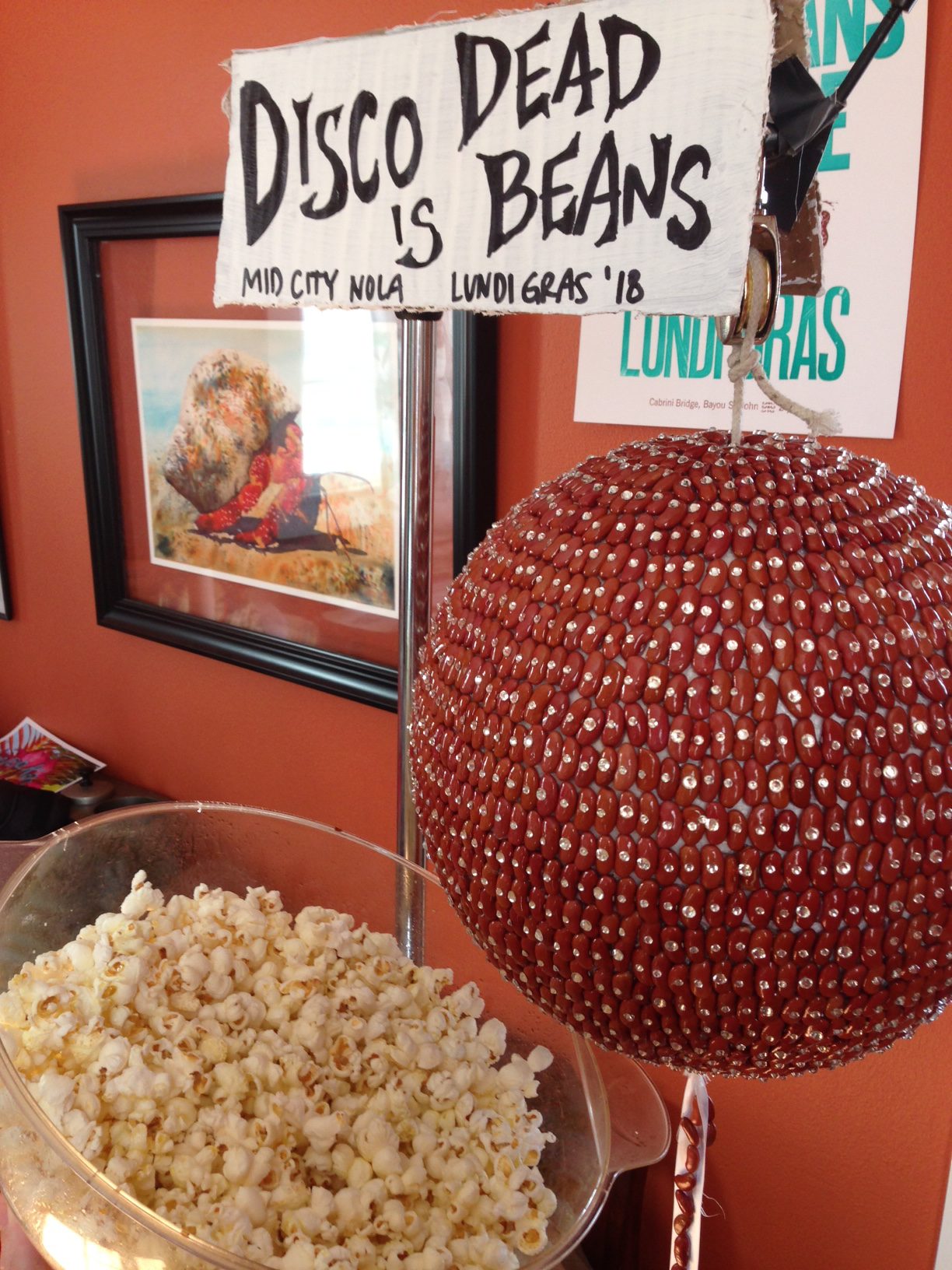Sunday we spent eating snacks and finishing our capstone costume projects for Lundi Gras—Dead Beans parade—the first inaugural—to which I wore a Disco [is dead] costume and KP was the ghost of the Seattle Super Sonics.