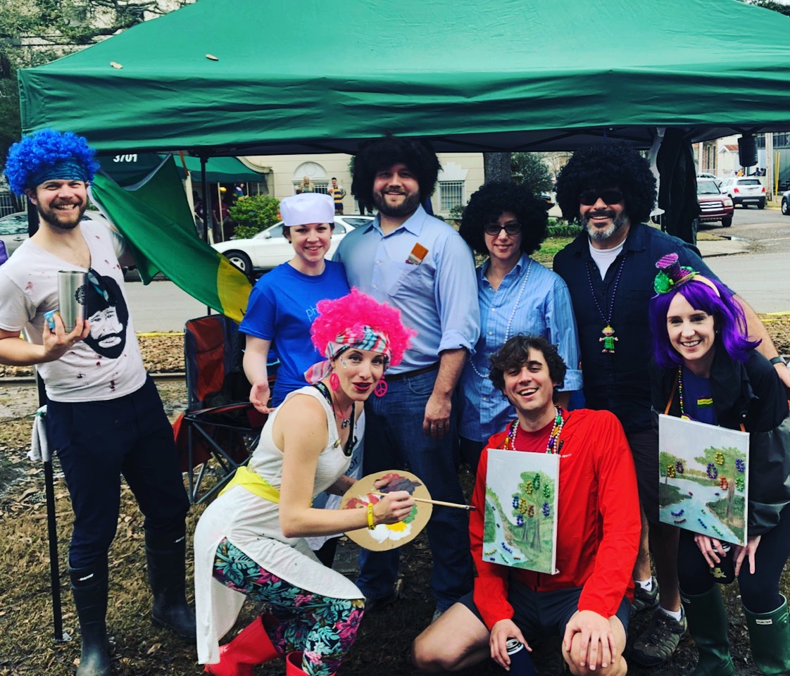 Saturday is Endymion—which we host as it is the only major parade in Mid-City. Bob Ross was our theme.