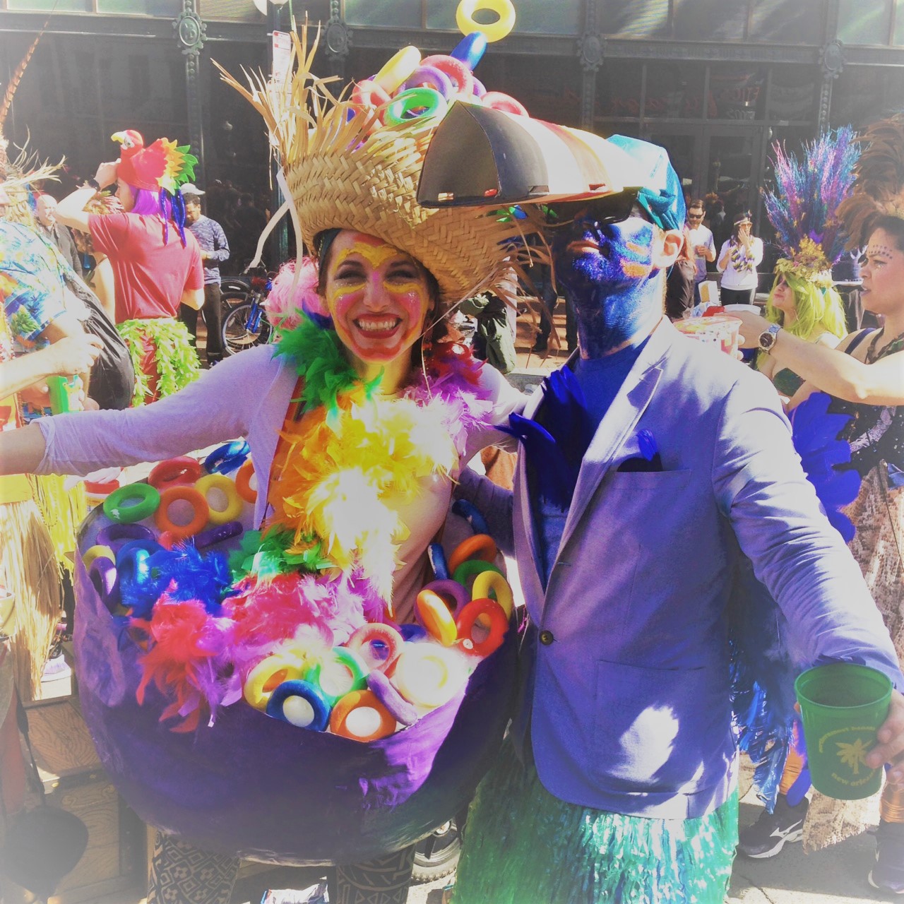 And the big finale—Mardi Gras—at which we were decorated as Toucan Sam and a big Bowl of Froot Loops.
