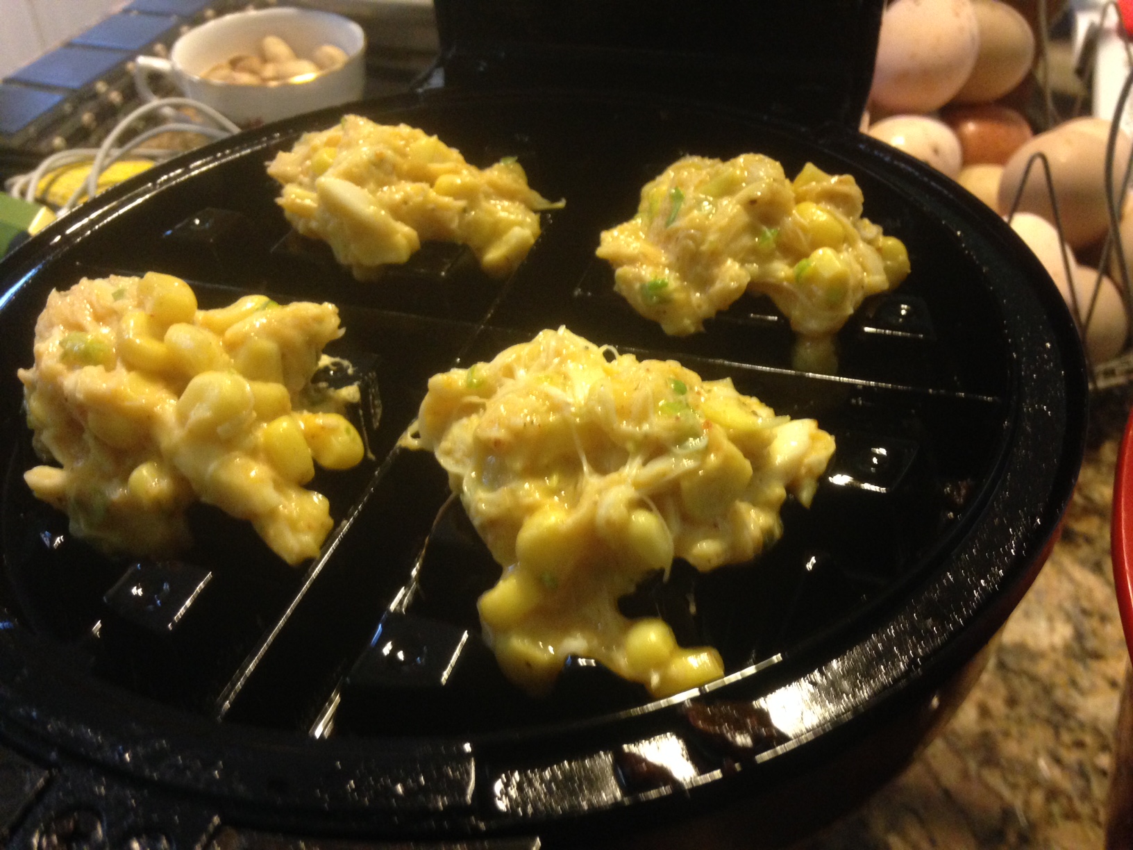 I give you, for the coming weekend, Crab and Corn Waffles.