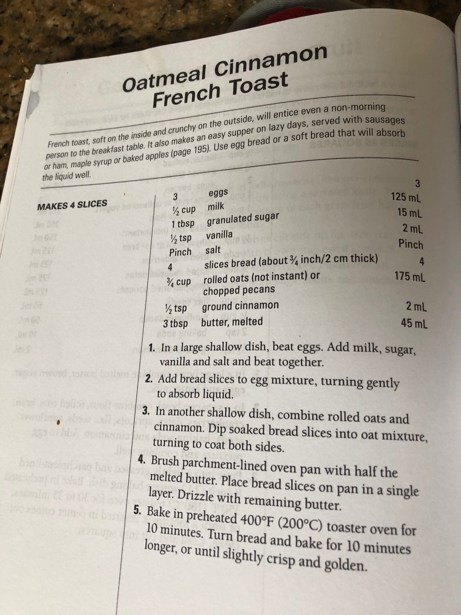 I’ve also always loved to use eggs for French Toast. This collection of toaster oven recipes by Linda Stephen has a great French toast recipe we used to get ourselves up and pumped to vote on Election Day this last week. I will now always coat my French toast in oats with cinnamon. Delicious.