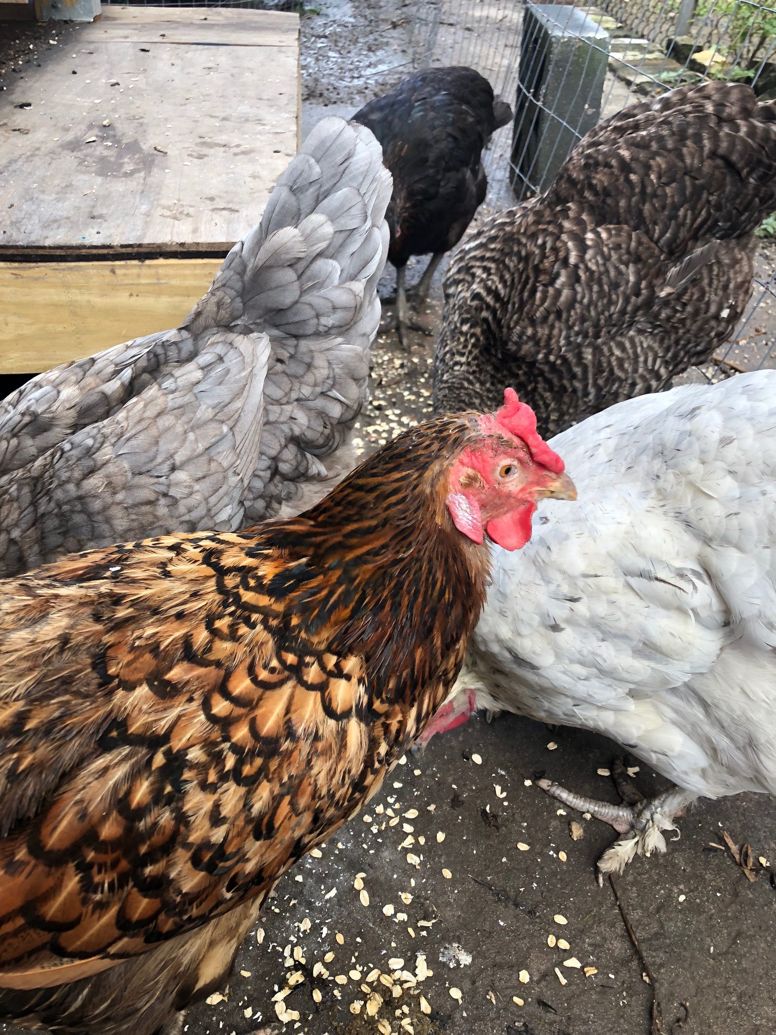 My hens bring me joy. Sometimes I lounge in the yard with a plan to read a book, and then spend the hour watching chickens dodder by, top-heavy, clueless, burbling like a slow stream. They bring me laughter and peace, and every day, warm and smooth round gifts. We love to give our ladies oats and millet seed and fresh lettuce and vegetable scraps. They give us compost to feed our garden plants. Endlessly they scratch and stir up the clay into a bed softer than our ocean floor New Orleanian soil every knew it could be.