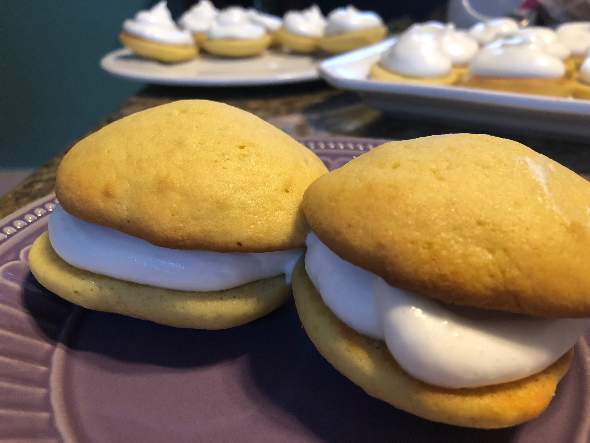 Whoopie pie filling (I just made meringue with four egg whites whipped with a sprinkle of cream of tartar and ¼ cup powdered sugar)