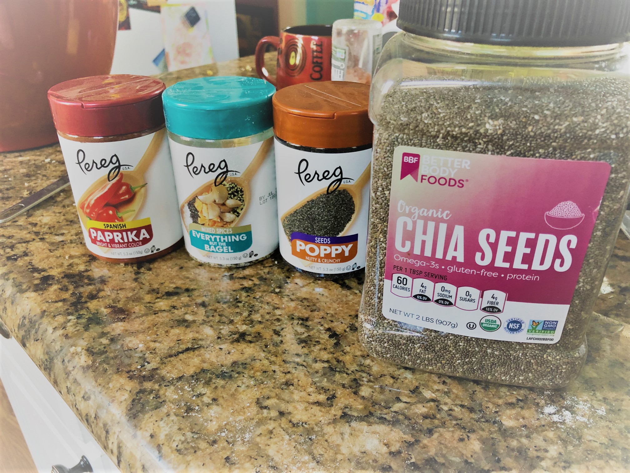 Another healthy snack I love is pumpkin seeds roasted in olive oil with Everything But the Bagel spice. I used about 2 TB olive oil to 2 cups of pumpkins seeds and 1-2 TB spice. Roast the seeds at 350 for 10 minutes to dry out, and then coat with oil and spice and return to the oven to roast for another 10 minutes. Also sprinkle in some chia seeds (on everything, btw).