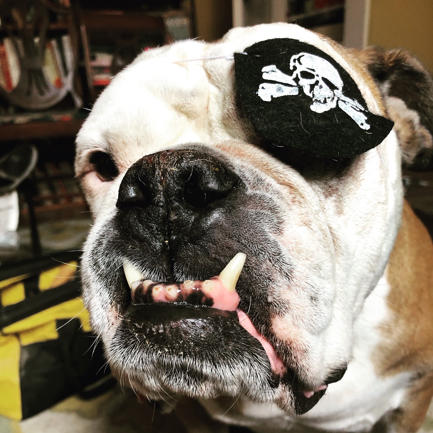 Our sweet bulldog is now half-blind. In a Shakespearean twist, her eyeball had to come out last Tuesday. She is adjusting like a champ. We are resorting to pirate costumes to adjust ourselves, but she is in much less pain now without the tumor that had invaded the eye, and so we are grateful. She got a few extra servings of turkey in consolation. Didn’t we all?
